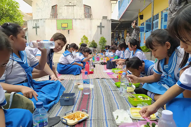Mungkin karena terlalu pagi dan tidak terbiasa sarapan, ada dua orang anak yang tidak dapat menghabiskan makanannya, sekali pun sudah berusaha. Mereka pun dengan penuh tanggung jawab melaksanakan konsekuensinya, yaitu mencuci piring. Melihat dua anak ini mencuci piring cukup banyak, beberapa anak tergerak hatinya untuk membantu. Tindakan kecil ini pun membuat teman yang lain juga ikut membantu. Dua sikap hadir dalam satu momen: tanggung jawab dan peduli.